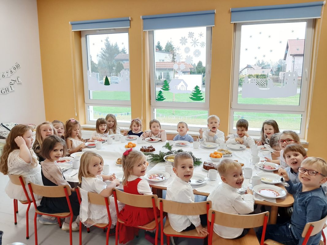 Święta to magiczny czas. Grupa Motylków miała okazję spotkać się z Świętym Mikołajem, dla którego zaśpiewaliśmy kolędę. Następnie zasiedliśmy do uroczystego obiadu.