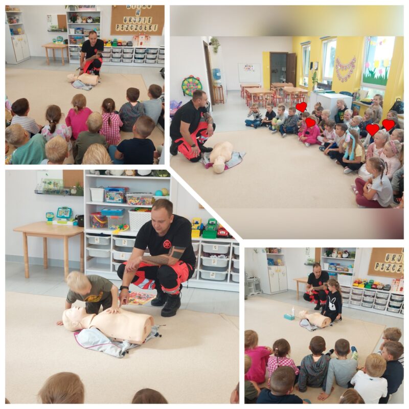 Grupa Pszczółki utrwala zasady Pierwszej Pomocy z ratownikiem medycznym – Panem Wojtkiem.
