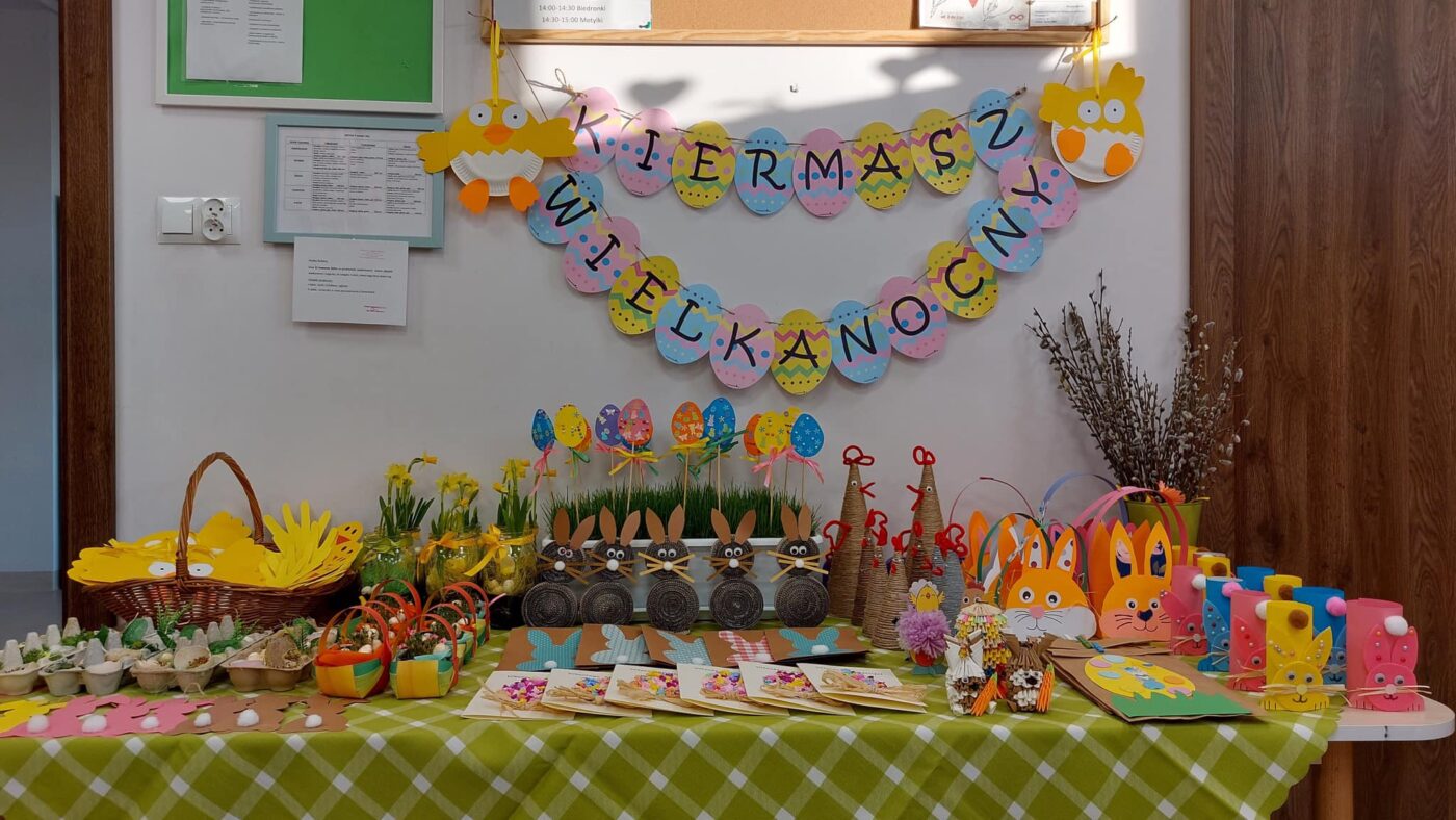 Na tym stole wielkanocnym jest tak kolorowo. Idą święta więc życzymy – żyj czekoladowo. Bazie srebrne są jak deszczyk cukrowy baranek. Niech słoneczny was powita wielkanocny ranek. Wkrótce święta wielkanocne, my się już cieszymy, wesołego alleluja wszystkim dziś życzymy.