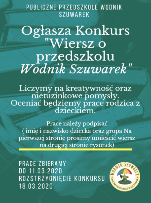 Szanowni Rodzice oraz przyjaciele przedszkola, zachęcamy do wzięcia udziału w konkursie : Na Państwa pracę czekamy do 11.03. Powodzenia!